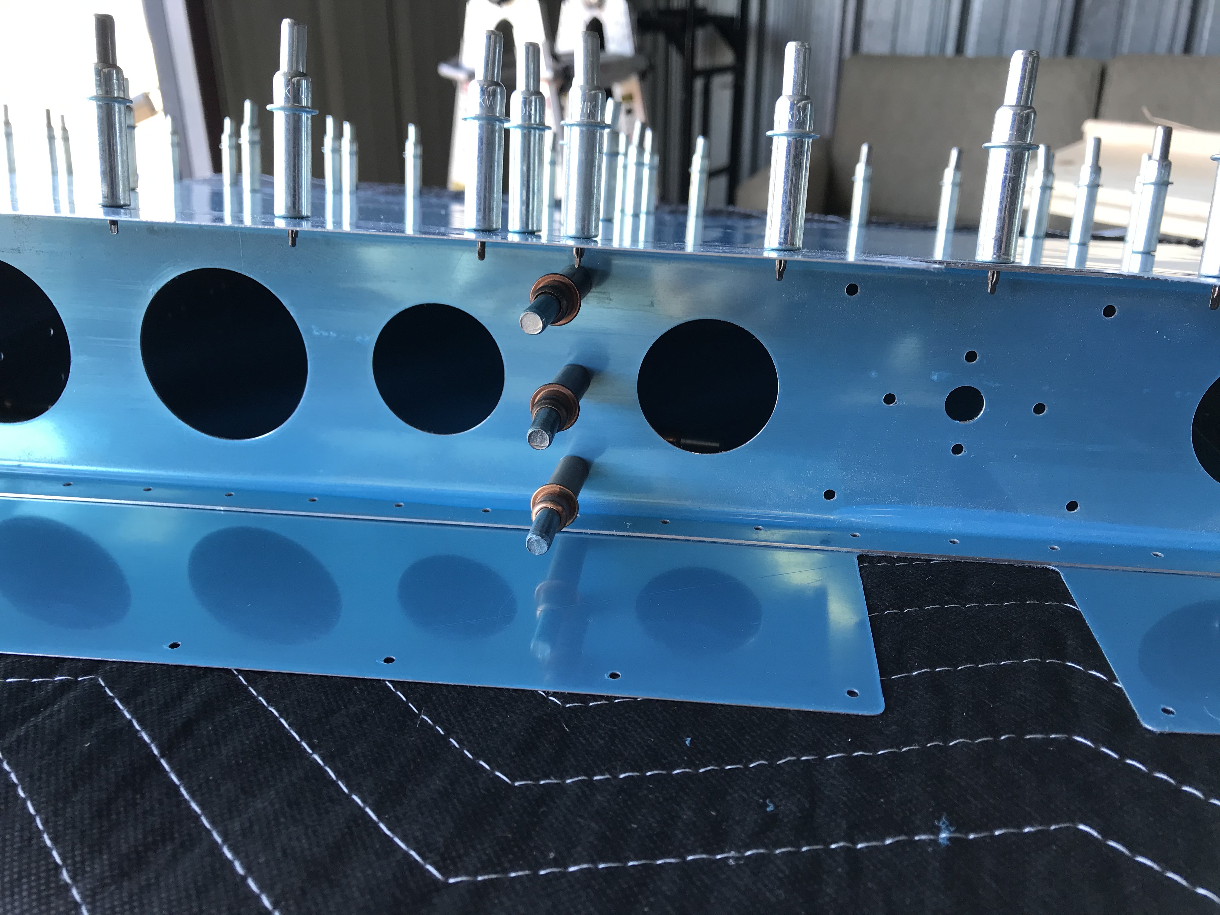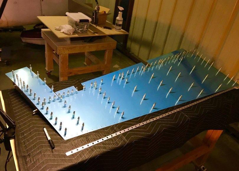 Anyway, back to the rudder… there was a little bit of final size hole drilling on the skeleton, and deburring. I also clecoed the rudder skins onto the skeleton for fit and alignment, and the AD3 rivets fit in perfectly.