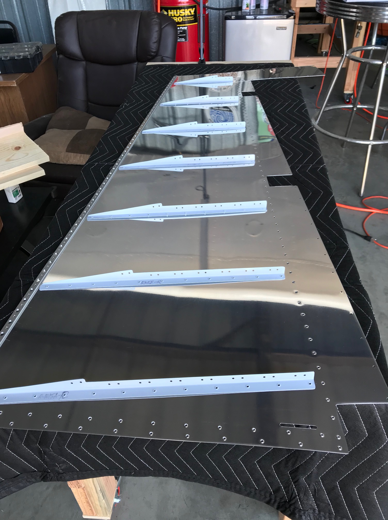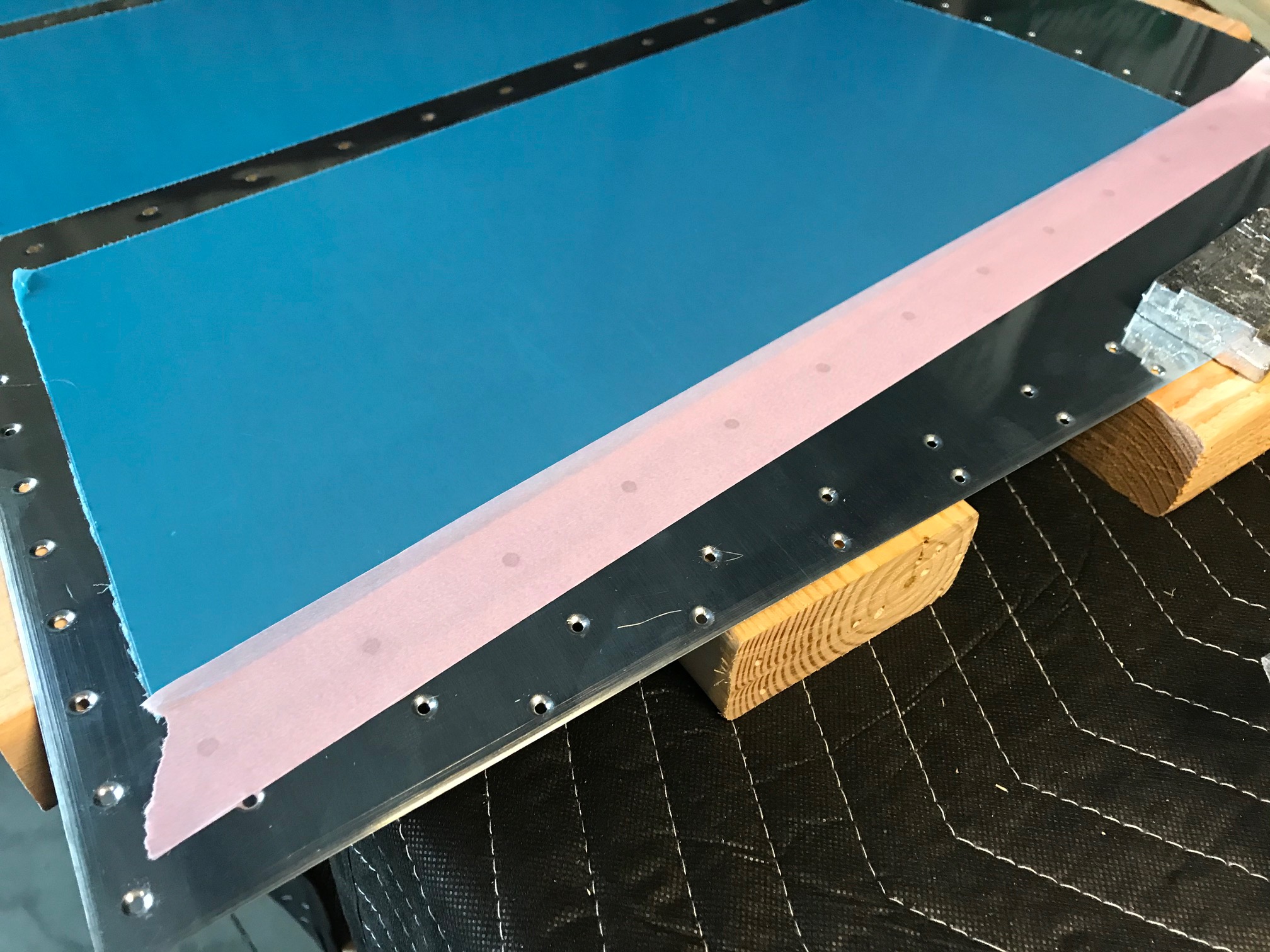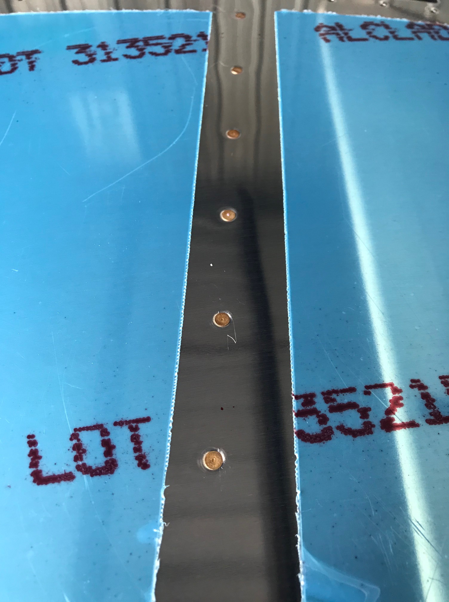 The backriveting technique leaves very nice looking rivets. I didn’t use any special rivet tape to hold the rivets in place, I just used a “gentle hold” painter’s tape. Happy with the results on the unbotched skin 😉
