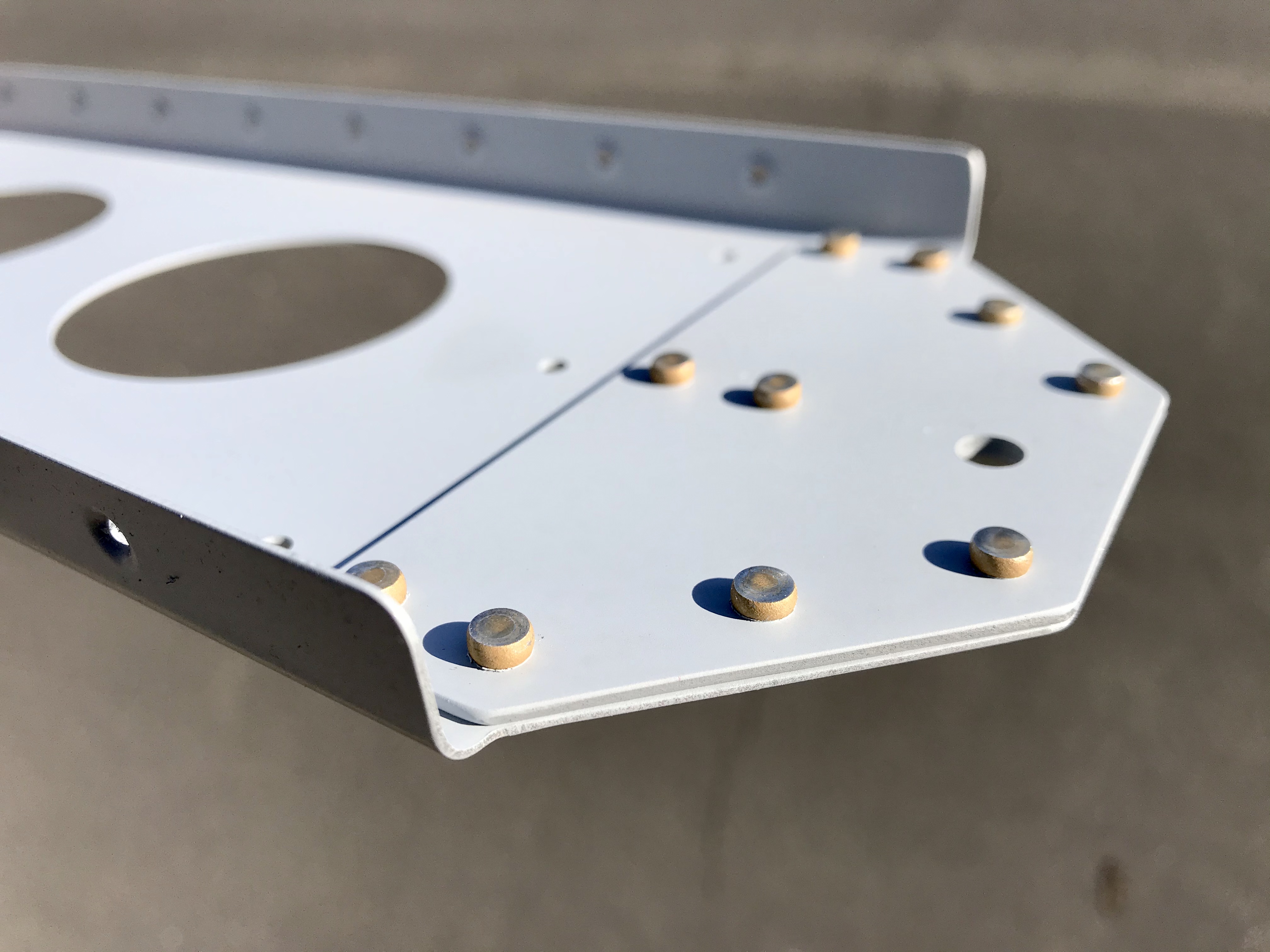 Shop heads look great, only because I’m using the pneumatic squeezer. I did have one rivet I had to drill out… the manufactured head was at a slight angle and left a bit of a gap… but the larger 1/8″ rivets are relatively easy to drill out.