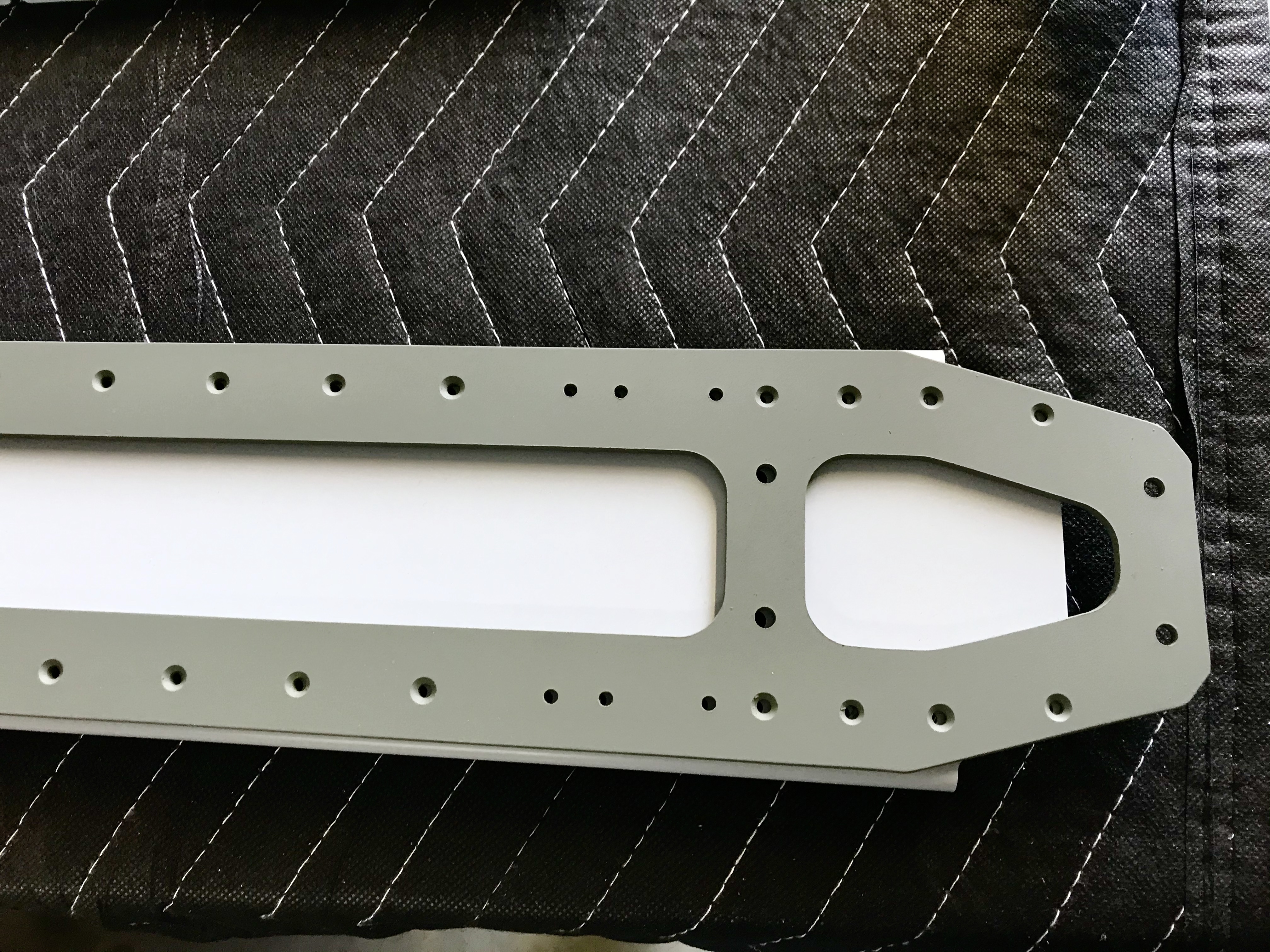 I also prepped and primed the rear spar doubler and spar caps. Ran out of the SEM self-etching primer that I like, so I used the Rustoleum. In my test pieces they performed very similarly… but using on an actual airplane part, I much prefer the SEM. The SEM applies much easier and more consistently and (with my heat gun) dries more evenly and is ready for handling (even if just to flip the piece over to spray the other side) much sooner.