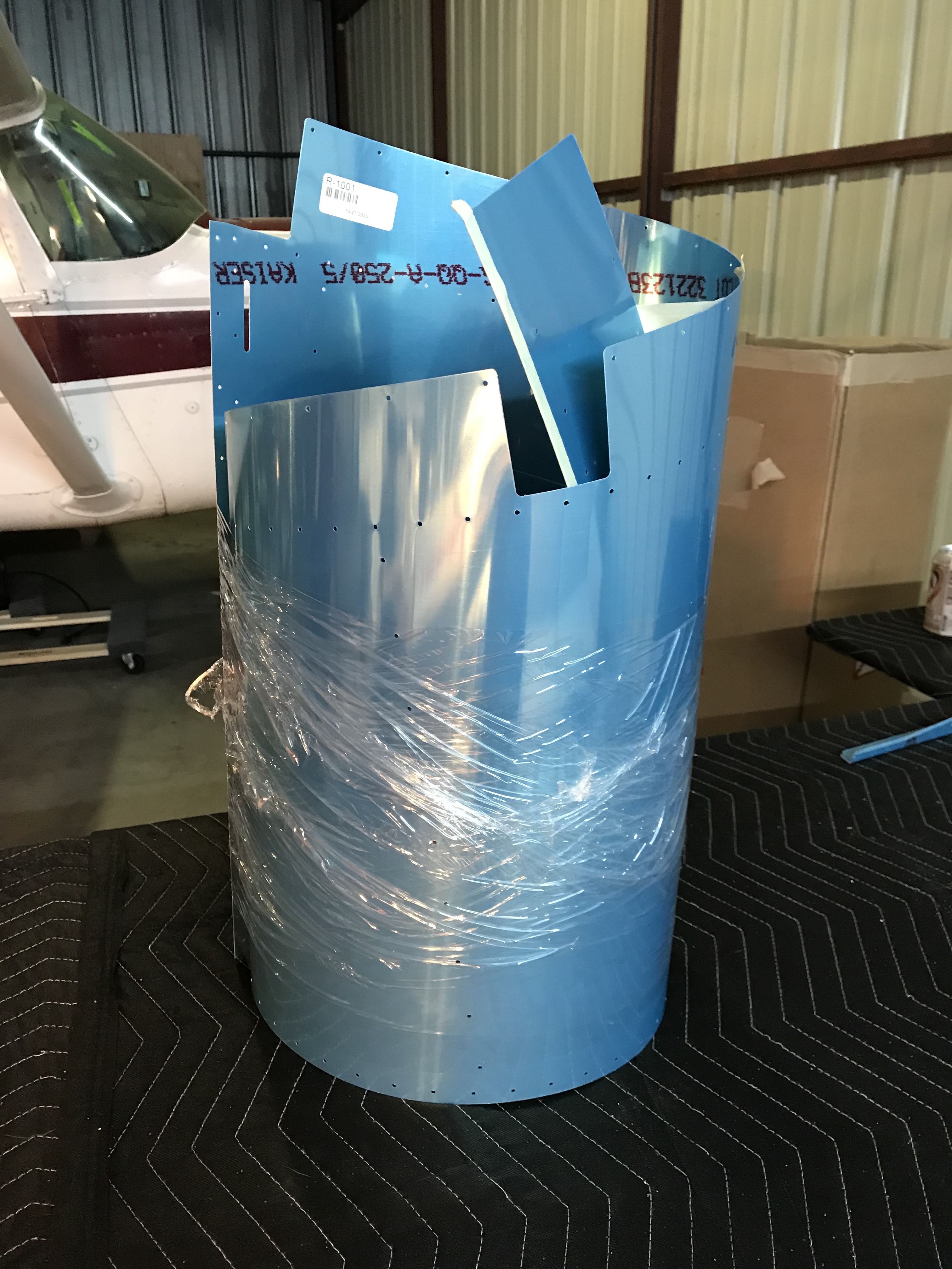 My replacement rudder skin arrived. I was wondering how they were going to ship it, expecting a flat box actually, but they rolled it up and packed it in a large box (along with some stiffeners I had ordered). The box was plenty big for the rudder skin, it was actually big enough for me! 😀