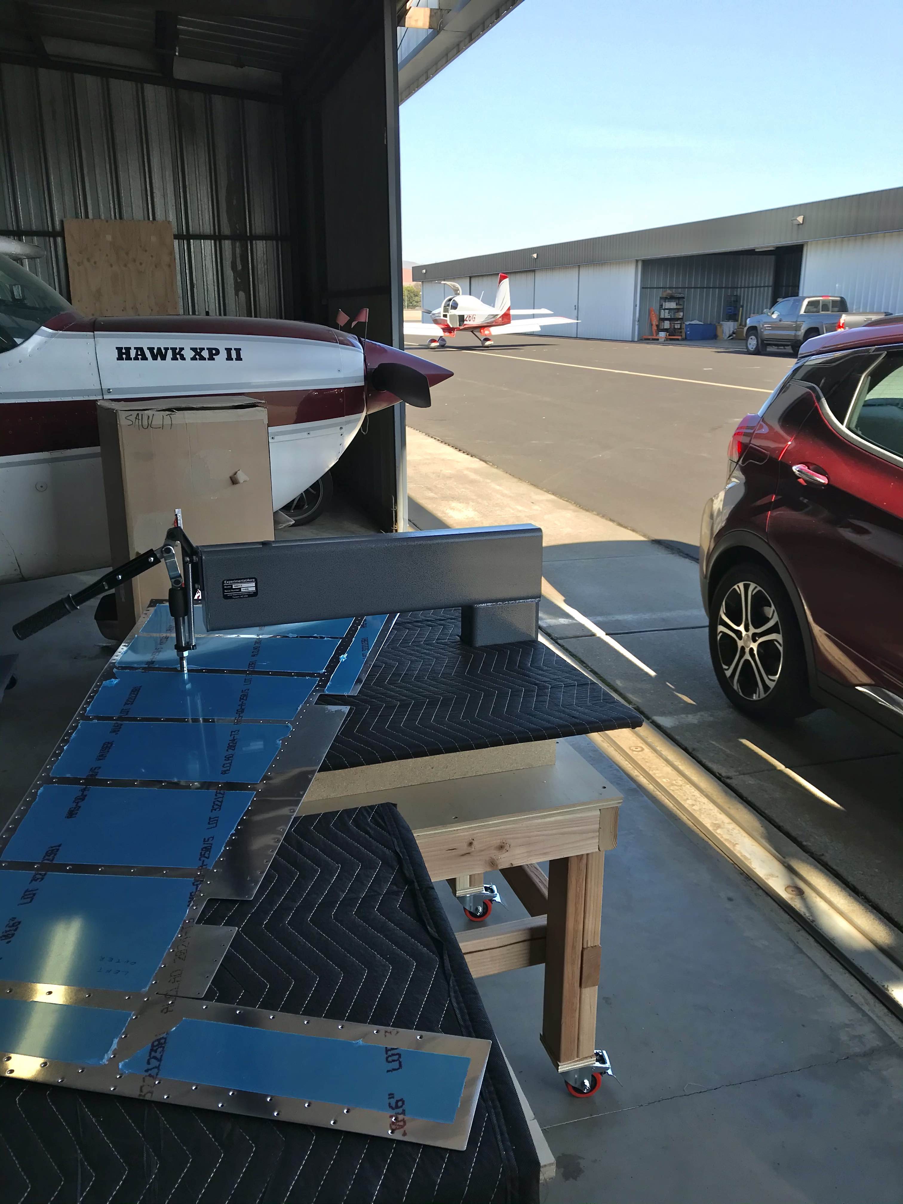 I got well beyond my original left rudder skin by riveting all the stiffeners, plus the rudder horn (with a newly installed nut plate), and top rib riveted on. Two rivets on the rudder horn were inaccessible, I have to locate my crow-bar and use a low-tech hammer, crow-bar, and steel plate riveting approach for those.