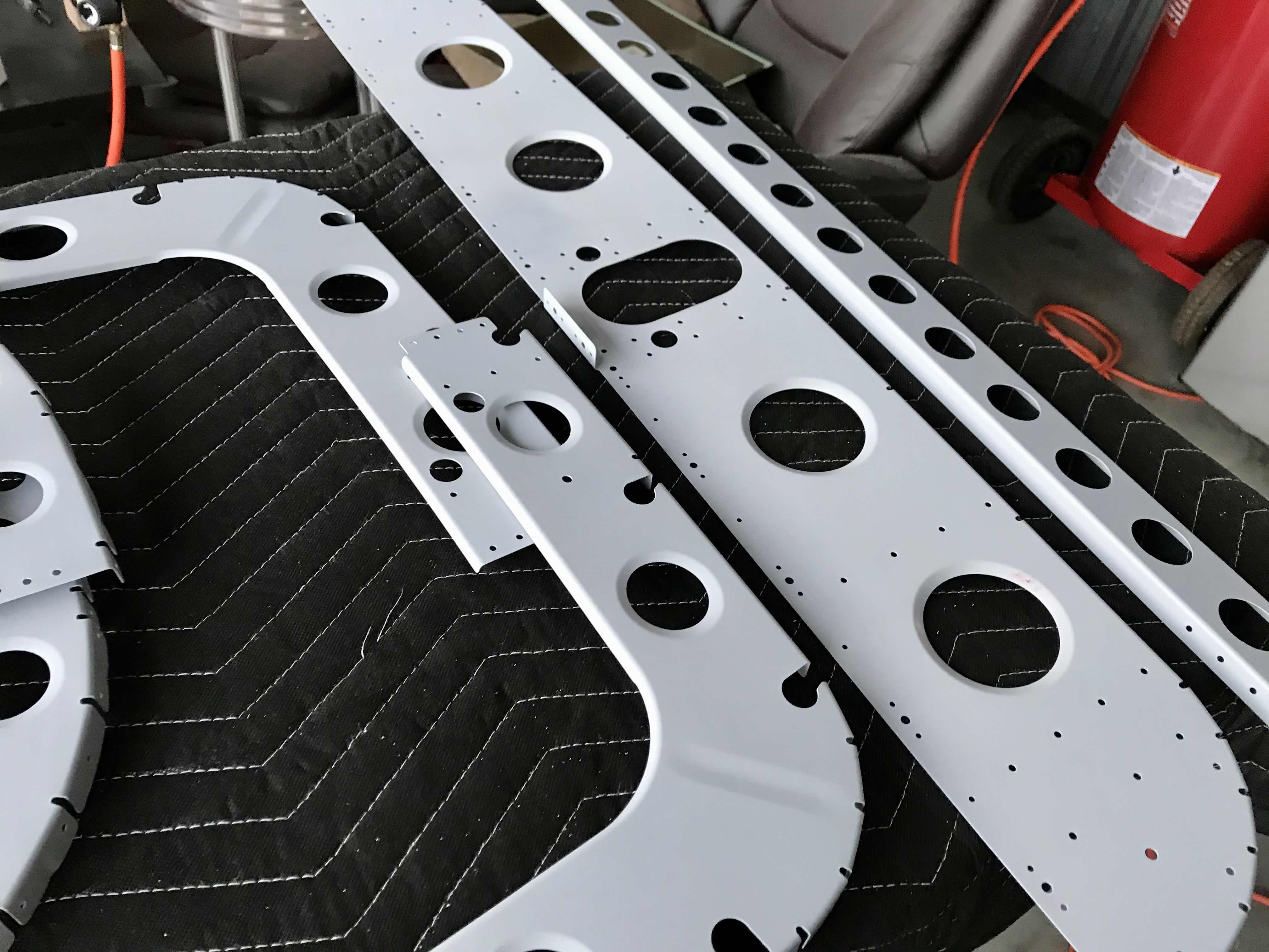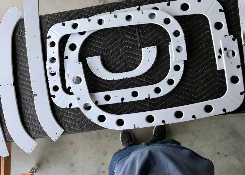 Today’s work was spent prepping the larger tailcone bulkheads for primer, and priming. They turned out very nicely. Then a lot of painstaking work deburring all the holes of the right side tailcone skin, both sides, and dimpling.