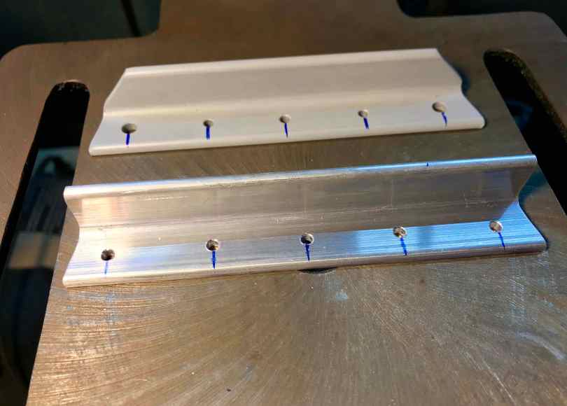 The bad part is the primed (primered?) one. Also, the “outboard” holes were a little too far inboard on the original part, so I corrected that as well.