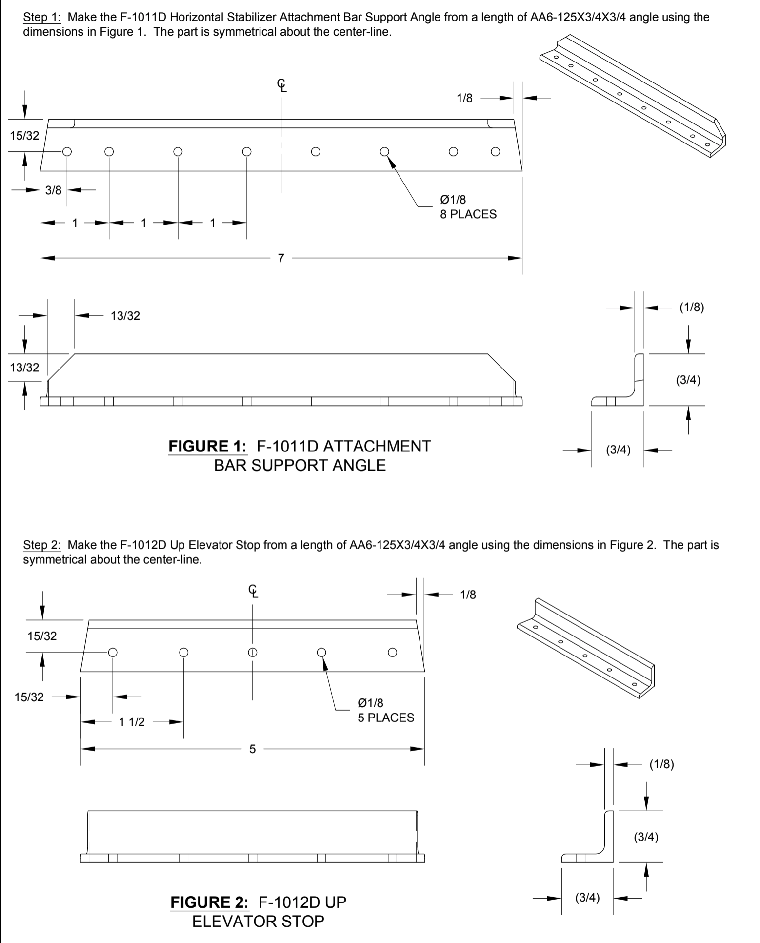 Remade a part today. The F-1012D Up Elevator Stop. Why? Well, there are two very similar parts to make from angle aluminum, with just different length and hole position. Oh, and one has corners cut on the vertical leg, the other one (the Up Elevator Stop) doesn’t. I think when I was marking up the parts, I got a little carried away and marked the corners to cut on both pieces. And cut them. So I have to remake. That’s what I get for cutting corners.