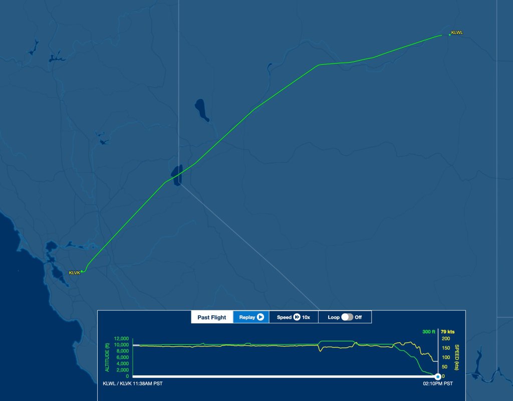 A couple of weeks ago (January 11th), some people were posting on the RV-10 Facebook Group that they had been tracking N260MG westward. I happened to look it up just then on FlightAware, and saw that it had departed Wells, Nevada and was halfway across California, and looked to be heading to the Bay Area. I extrapolated the track, and it was actually pointed directly to Livermore. Sure enough, I saw it “land” online at Livermore several minutes later. I texted my hangar row neighbor Dave (who built his own beautiful RV-10 himself!) notifying him that one of us might be the winner 😉