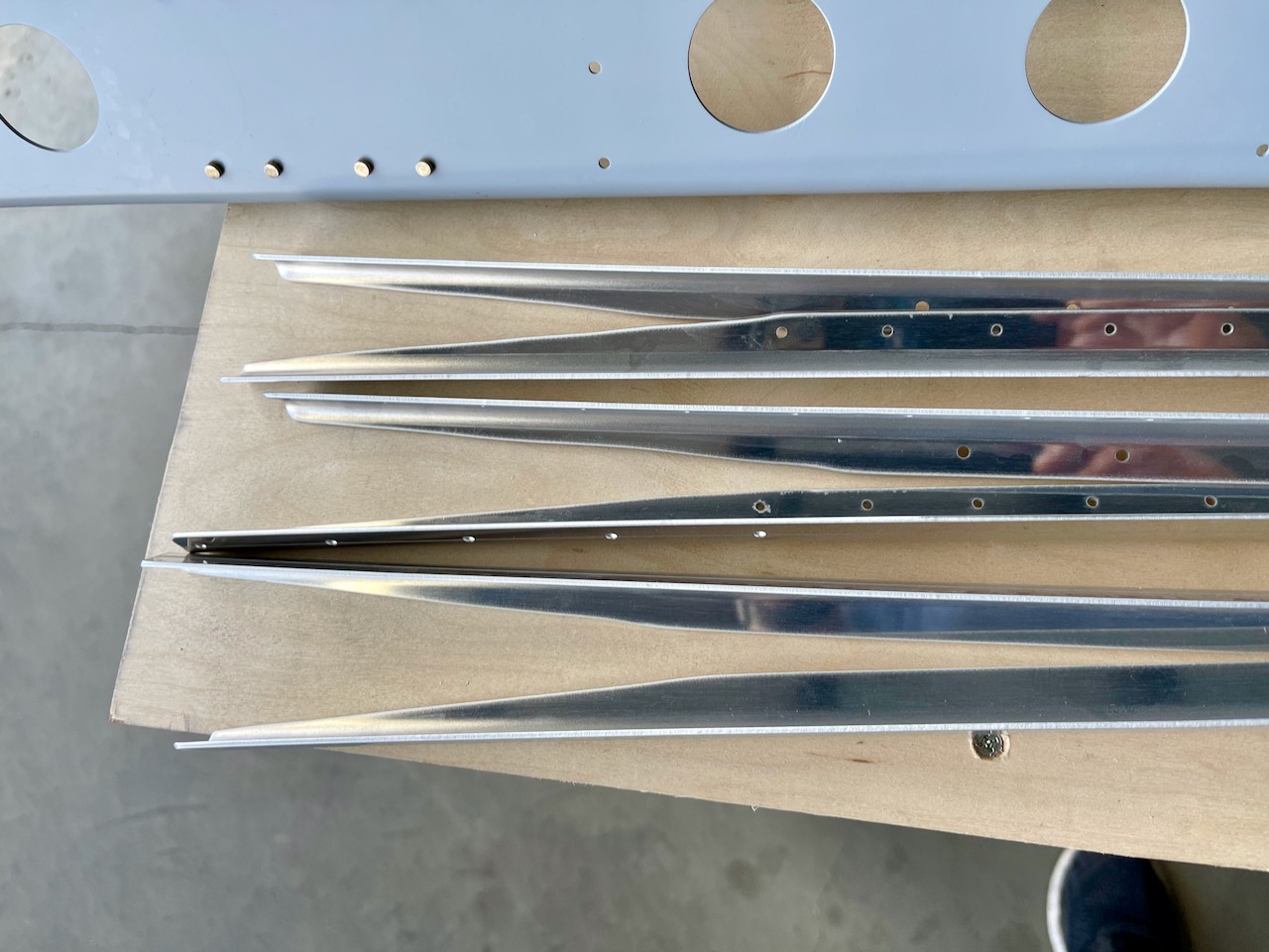 Then it was on to some parts fabrication and finishing for the front spar. Two support brackets need to be fabricated out of some beefy angle aluminum. Then it was the tedious task of cutting angles out of and edge deburring of half a dozen spar end caps and stringers.