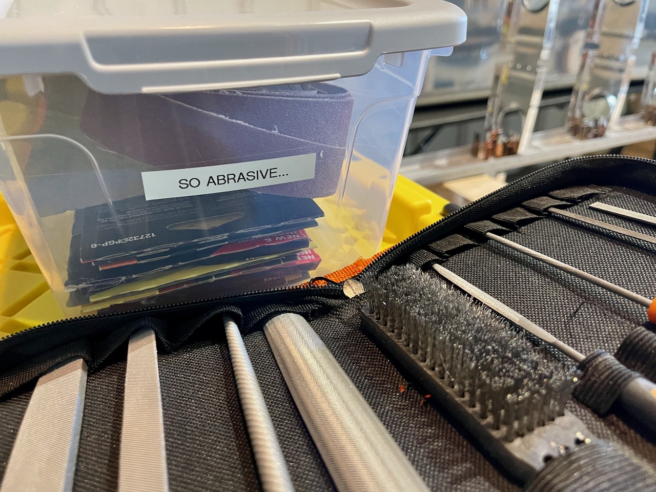 Started work on the horizontal stabilizer skins. Removed the inside vinyl, and on the outside along the rivet lines. Then deburred the rough edges starting with a file, then a couple of grits of sandpaper, then finally with maroon scotch-brite.