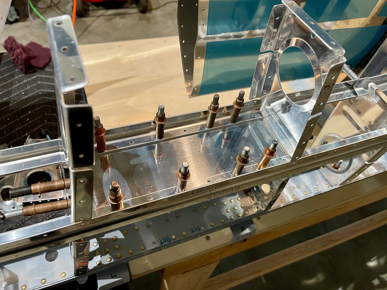 Clecoed the stiffeners and match drilled the shear web. Then started disassembly and deburring of the holes. The #40 holes on the stiffeners were also countersunk per plans.