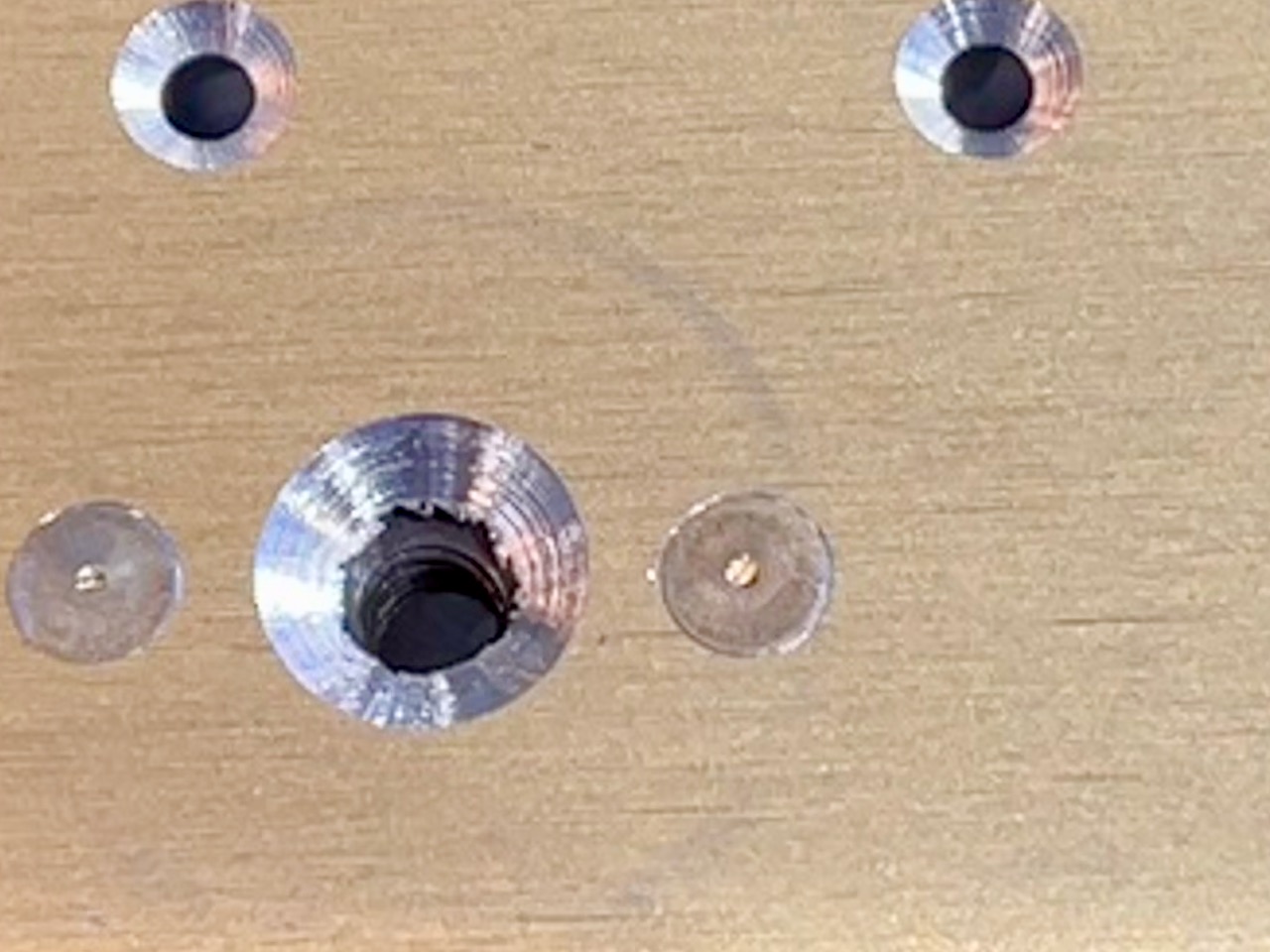 I also had to clean up the spar countersink holes for the tanks. I had done this previously on the topside of the right wing, but realized still had to do it to the left spar as well. The issue is that the countersink goes through the whole thickness of the spar, and the hole gets enlarged. The countersink cutter makes a terrible reamer in this situation, and the holes end up having rough edges. Fortunately, per the plans, the diameter of the holes can be as large as 7/32″ so a quick cleanup with a #3 drill bit (which is slightly smaller) cleans up the edges nicely.