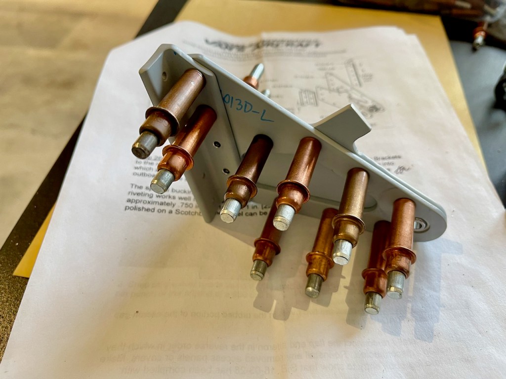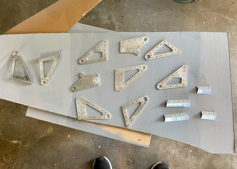 Deburring all the edges and holes of the 4 aileron bracket parts… then a light scuff, clean and prime. Ready to rivet…