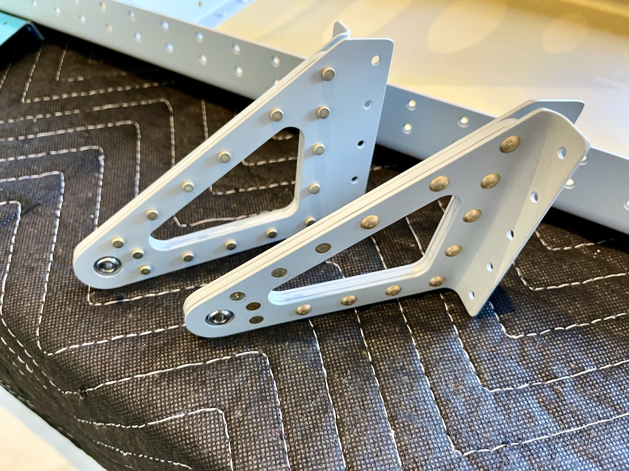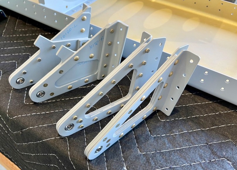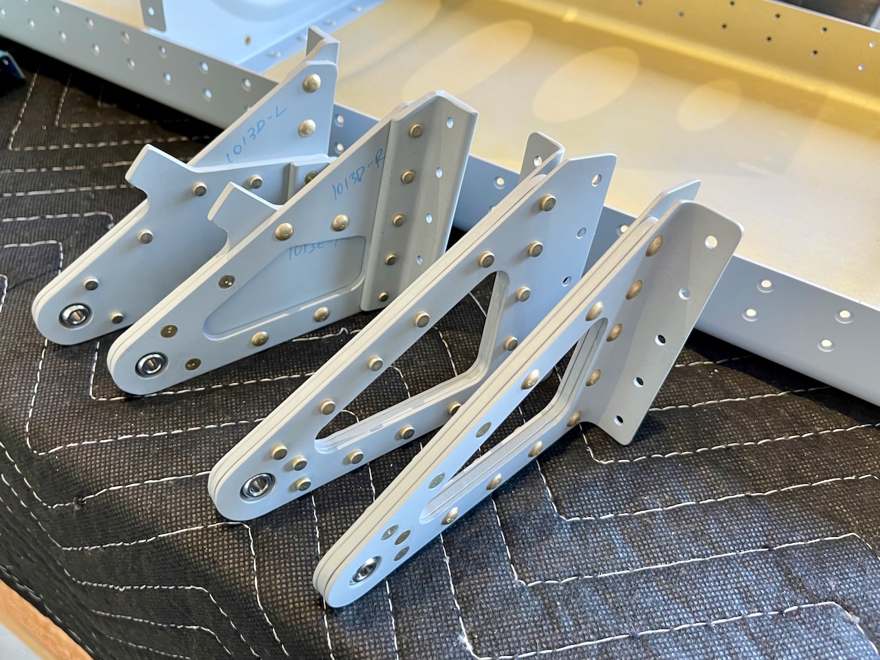 Got the 4 aileron brackets assembled. The two outboard ones are the original design, and the two inboard ones are the beefier service bulletin ones, with the angle aluminum. Hopefully I installed the flush rivets on the correct side of the little angle aluminum, in retrospect the plans weren’t 100% clear.