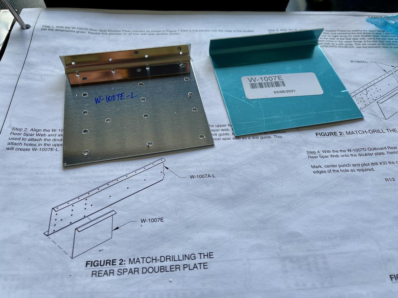 Also did a bunch of match drilling of 6 doublers for the rear spars. Got those as well as a couple or doublers that came with the service bulletin kit all deburred and ready for scuff/clean/prime.