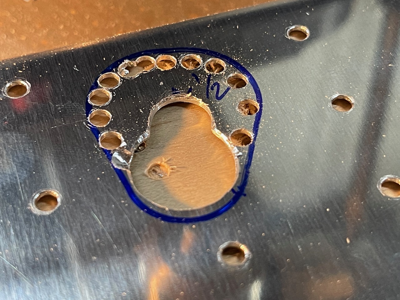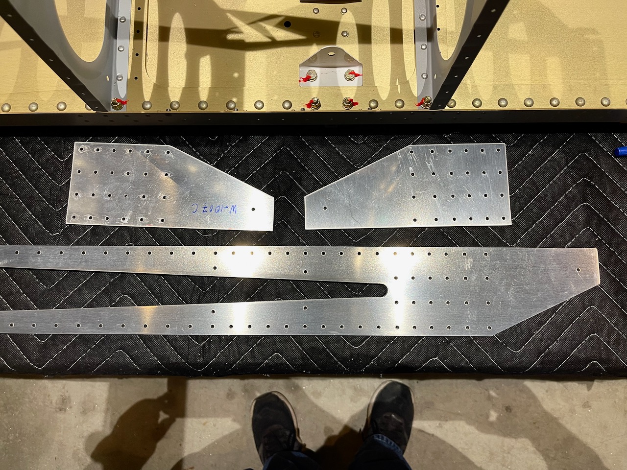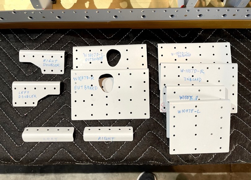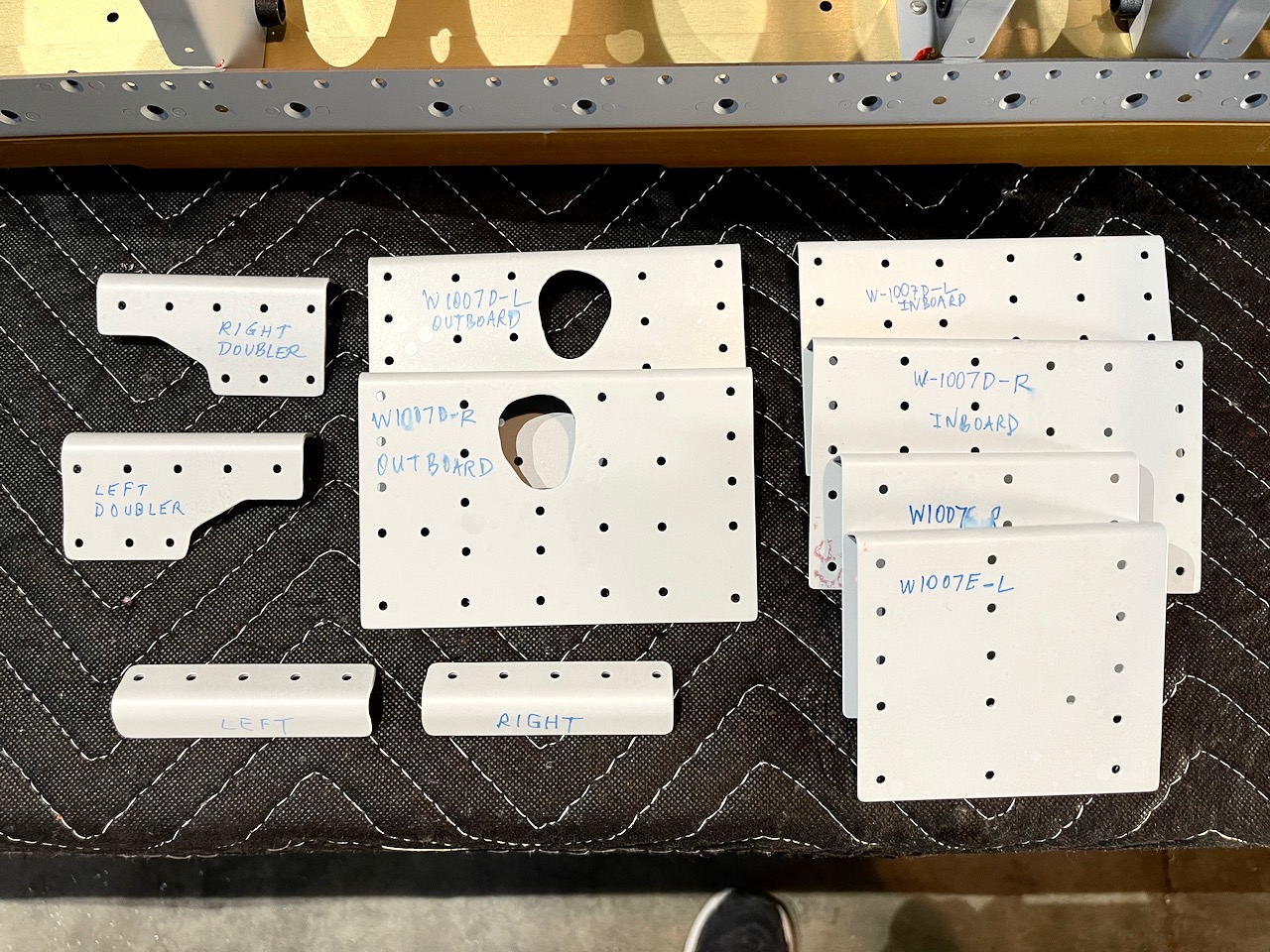 Cut out the holes for the pushrods in the small outboard doublers. Didn’t have the greatest method to do this, ended up drilling numerous holes then used a pair of baby snips then smoothed it out with a Dremel. Then it was time to scuff, clean and prime the small doubler pieces. Finally, the large doubler pieces were edge-deburred.