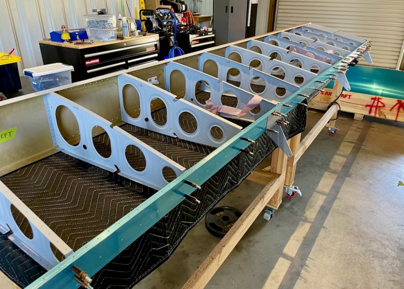 Clecoed the rear wing spars to the wing ribs with all the doublers in place and did a few of the final steps. This was mostly just a bit of match drilling, countersinking, and dimpling. Then disassembly and hole deburring. I’ve still got the edge deburring to complete on these spars, then it will be time for priming and final assembly.