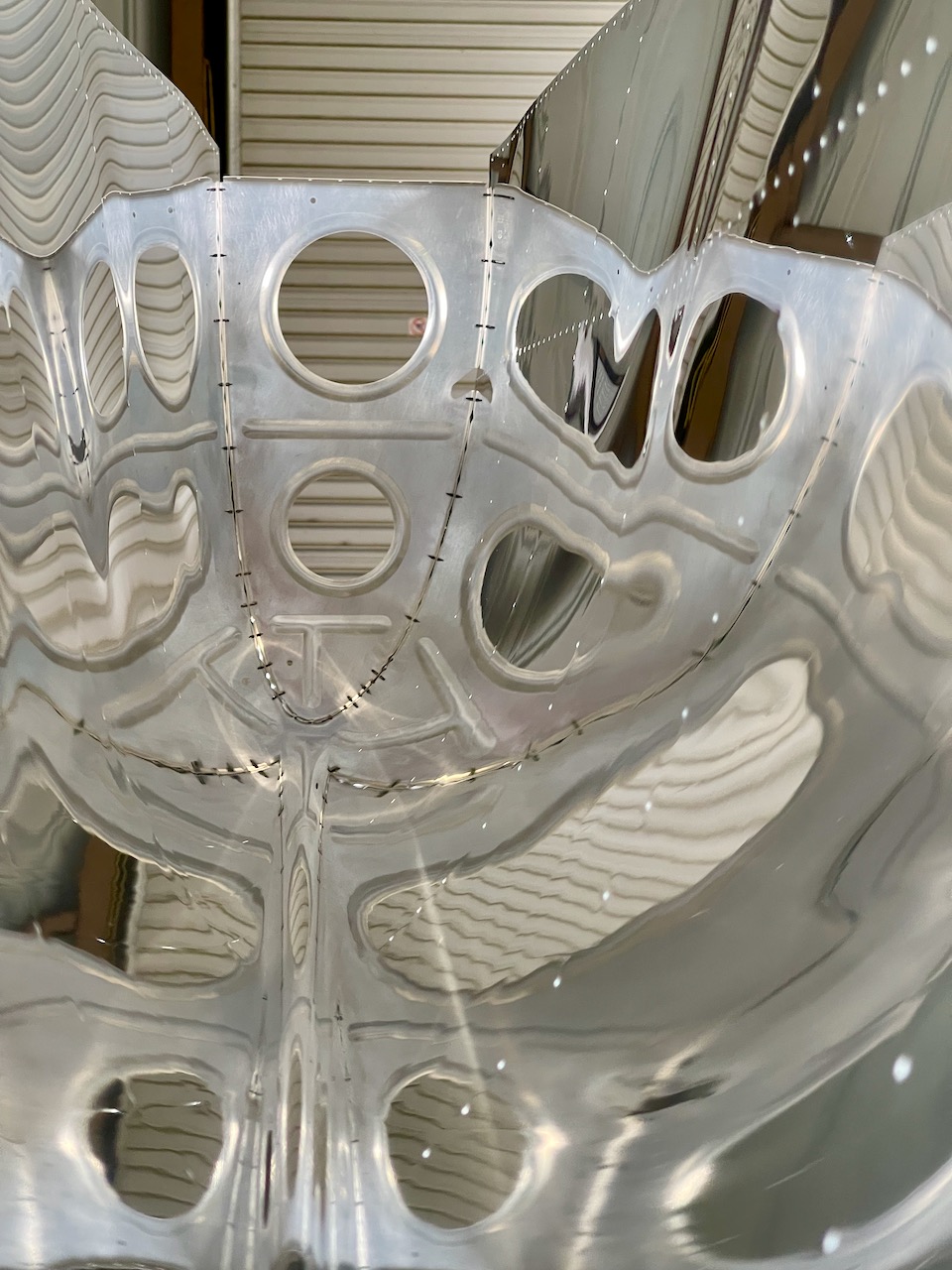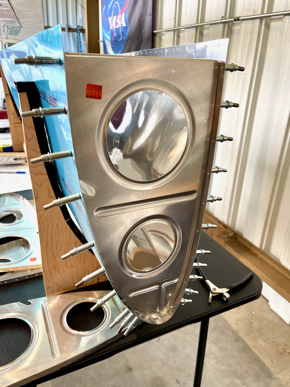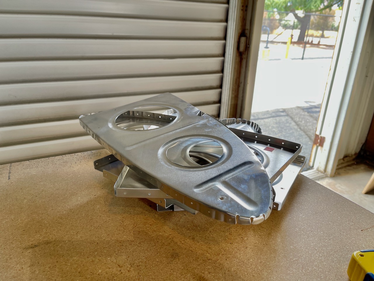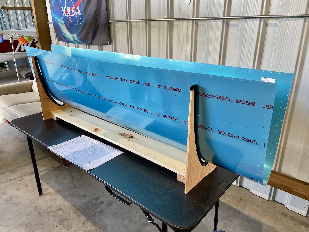 Finished building the leading edge cradle, to be used for the outboard leading edges as well as the tanks. Edge deburred the nose ribs for both wings, then the nook and cranny deburring done for the left wing ribs. Then peeled the inside vinyl from the left outboard skin, and started clecoing in the ribs.