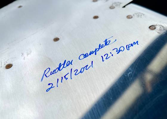 Almost completed the rudder today. Riveted the rudder skins against the spar. The squeezer yoke was not long enough to