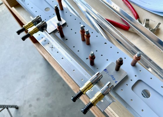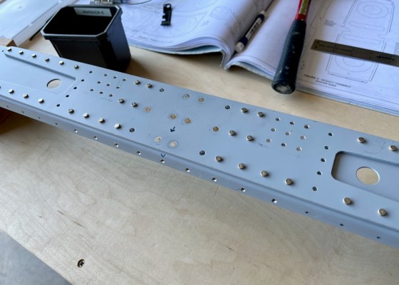 Just a couple of hours today on riveting the doubler and spar caps onto the front spar. Four different sizes