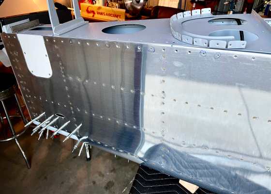 Finished riveting the left side tailcone skin to the stiffeners, frames and bulkheads. All within reach with my little stepladder.